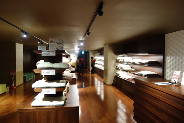 ピロウショップで宿泊中に使用する枕を無料で選ぶ事ができます。ベッドもあるので、色々試す事ができます。数に限りがあるので、早めに行くのがお勧めです。