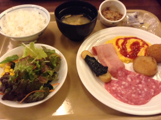 朝食は1階の居酒屋が開放されますが、なかなかの品揃えで満足です。