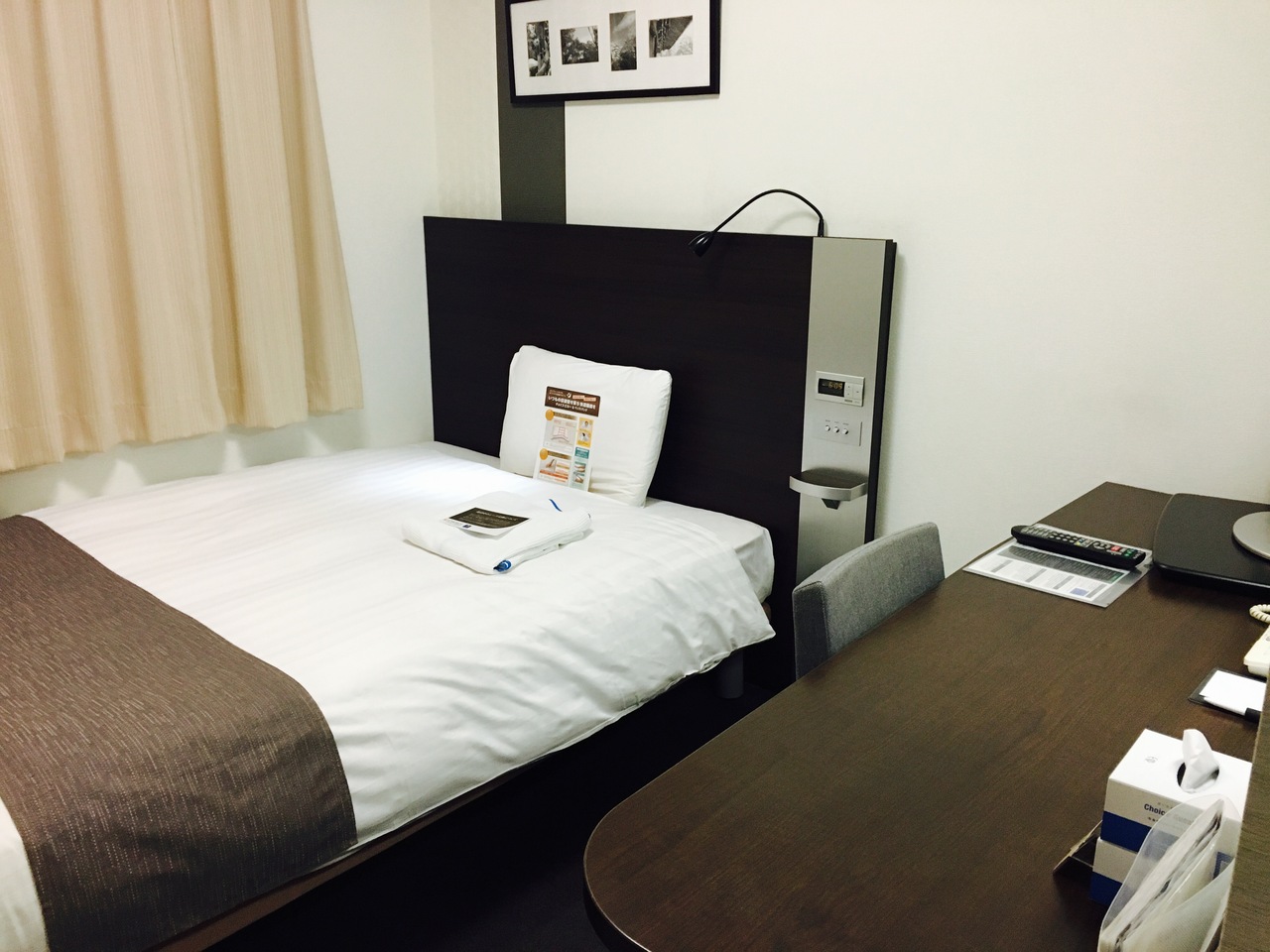シングル禁煙室を選び宿泊。ベッドは広くて快適でした。鏡も大きくて便利で、室内も狭さを感じなかったです。ただ、大浴場がなかったのが残念ポイントでした。