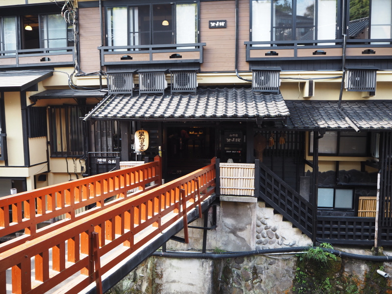 『山の宿 新明館』は、川沿いに建てられた宿から川にかかる橋が印象的で、どこか懐かしい風景と佇まいを感じさせます。