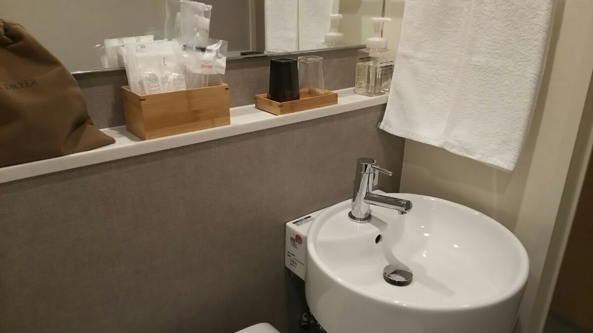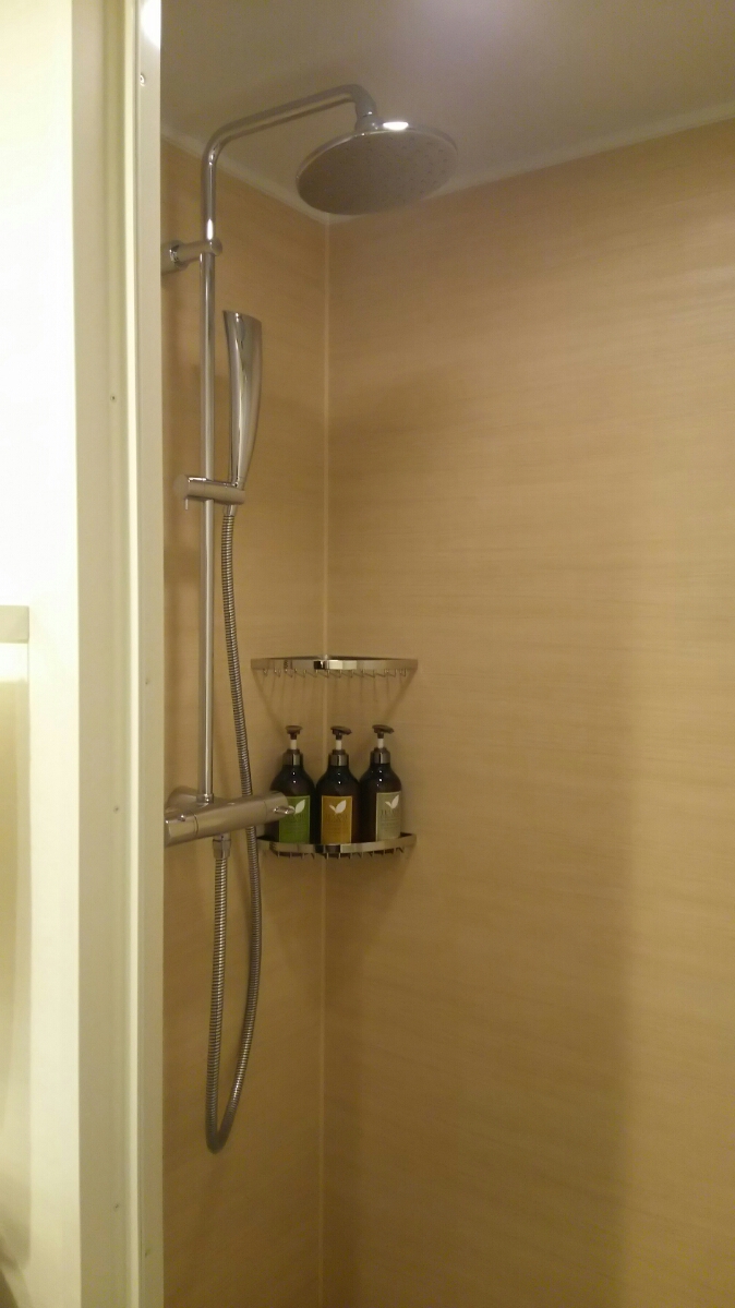 ホテルの部屋は激狭いです。バスタブが無い代わりにシャワー室があり、シャワーヘッドもレインシャワーもあって、これもポイント高いです。