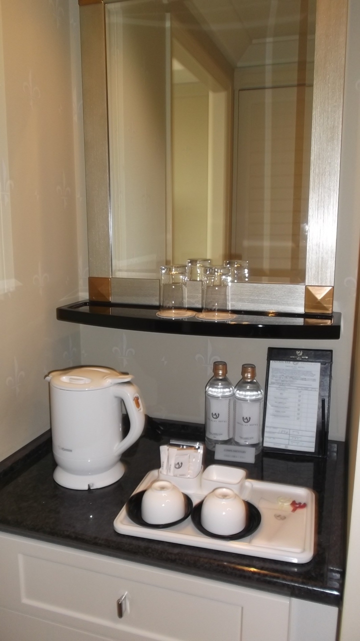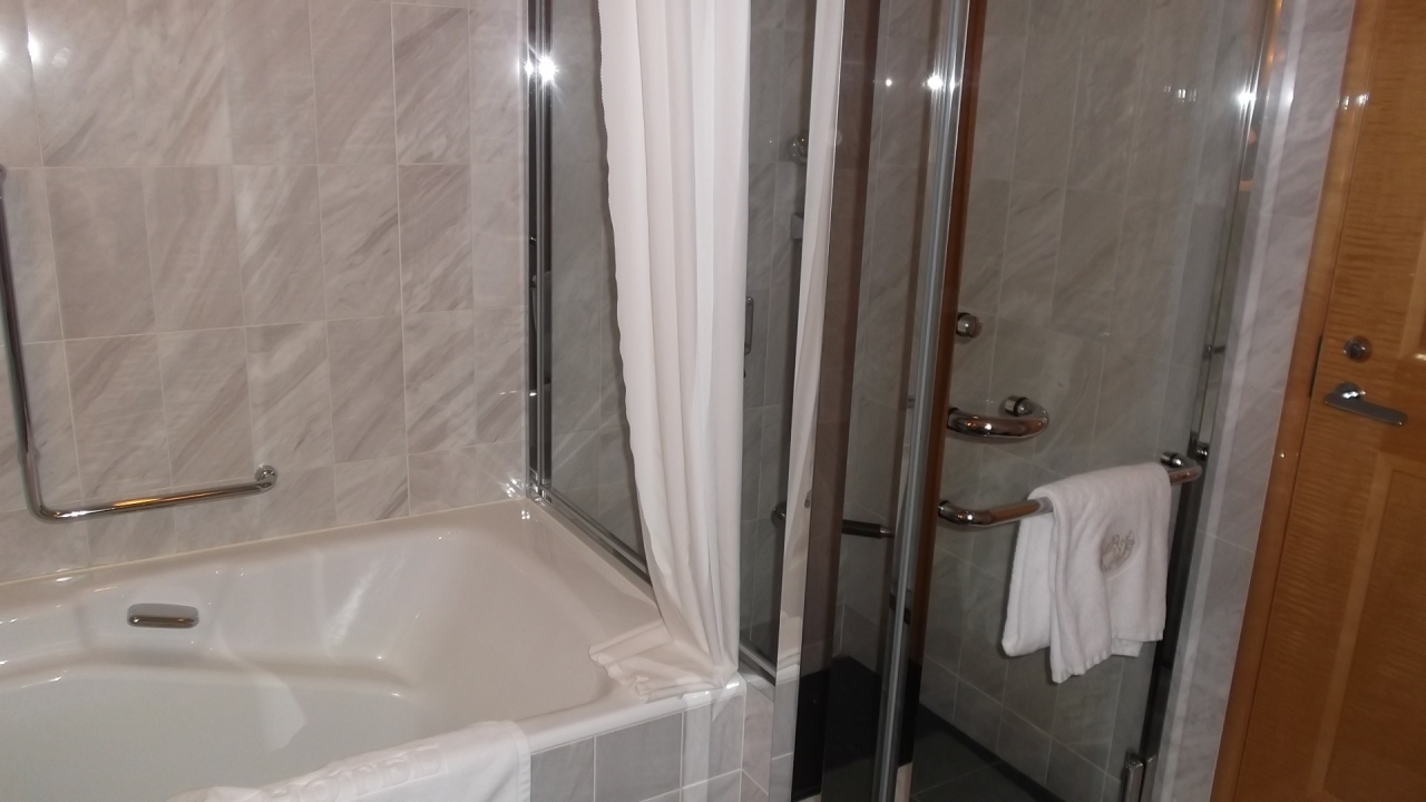 JR大阪駅桜橋口から無料送迎バス(平日15分・土日祝10分間隔)で約15~20分でホテル到着。車止でベルボーイにスーツケースを渡し、2Fでチェックイン。部屋は18Fの角部屋。眺望抜群で室内も超豪華。トイレ・洗面・バスタブ・シャワールームが一つにまとまりアメニティも豊富。お願いして加湿器とハジャマを要望。すぐに対応してくれる親切さ、とにかく客を最大限もてなしてくれる温かい心遣いに感動。超一流ホテルの格というものを感じさせられた。