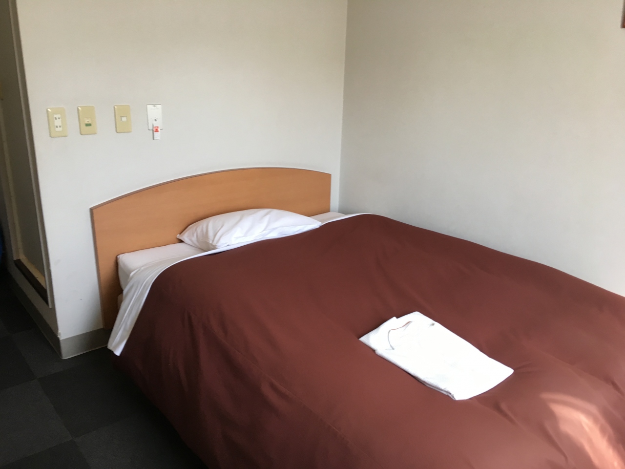ベッドはダブルな上、部屋も広くお値段以上の部屋でした。