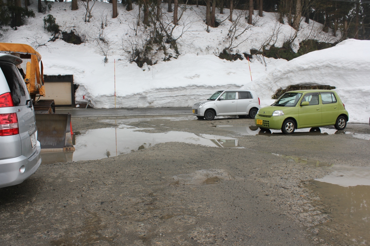 宿の駐車場も「ここに駐めるの?」という感じで大きな水たまりがたくさんあり