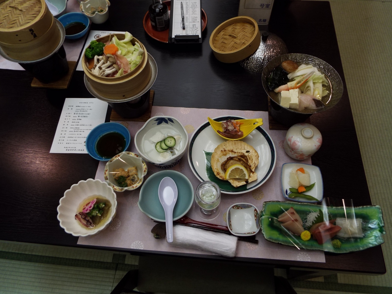 飛行機とバスを組み合わせたツアーの最後に泊まったのが、「不老ふ死温泉」です。青森市内のホテルで昼食を済ませた後、ホテルに着いたら、もう夕方になっていました。取るものもとりあえず、浴衣に着替えて、ワイフと共に「海辺の露天風呂」へ急ぎました。海辺というより、波打ち際で温泉に浸かるという感じです。海に向かって、右側が女湯、左側が男女混浴?左右の仕切りは、コンクリートで固めた石垣・・・高さ約1.5mといった造りです。でも、隣は見えないから安心です。この泉質は、有馬の金泉に近いそうです。夕食はお座敷にテーブルと椅子という、楽な場所で頂くことができました。新鮮な魚介類のお蔭で、お酒がすすみました。ワイフと、「今度は、ツアーでなくゆっくり行ってみたいね」と話している今日この頃です。