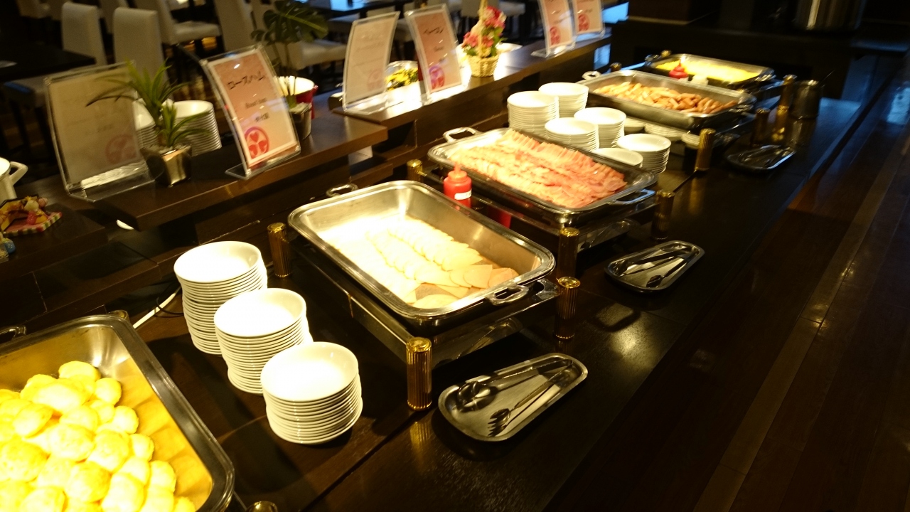 朝食は夕食と同じドリンクバーにコーヒー、お茶類にプラスして牛乳とオレンジジュースがありました。