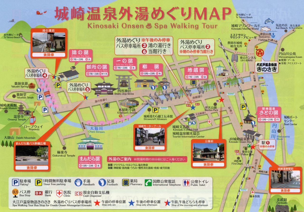 地蔵湯・柳湯・一の湯・御所の湯は城崎モータープールプールで下車。