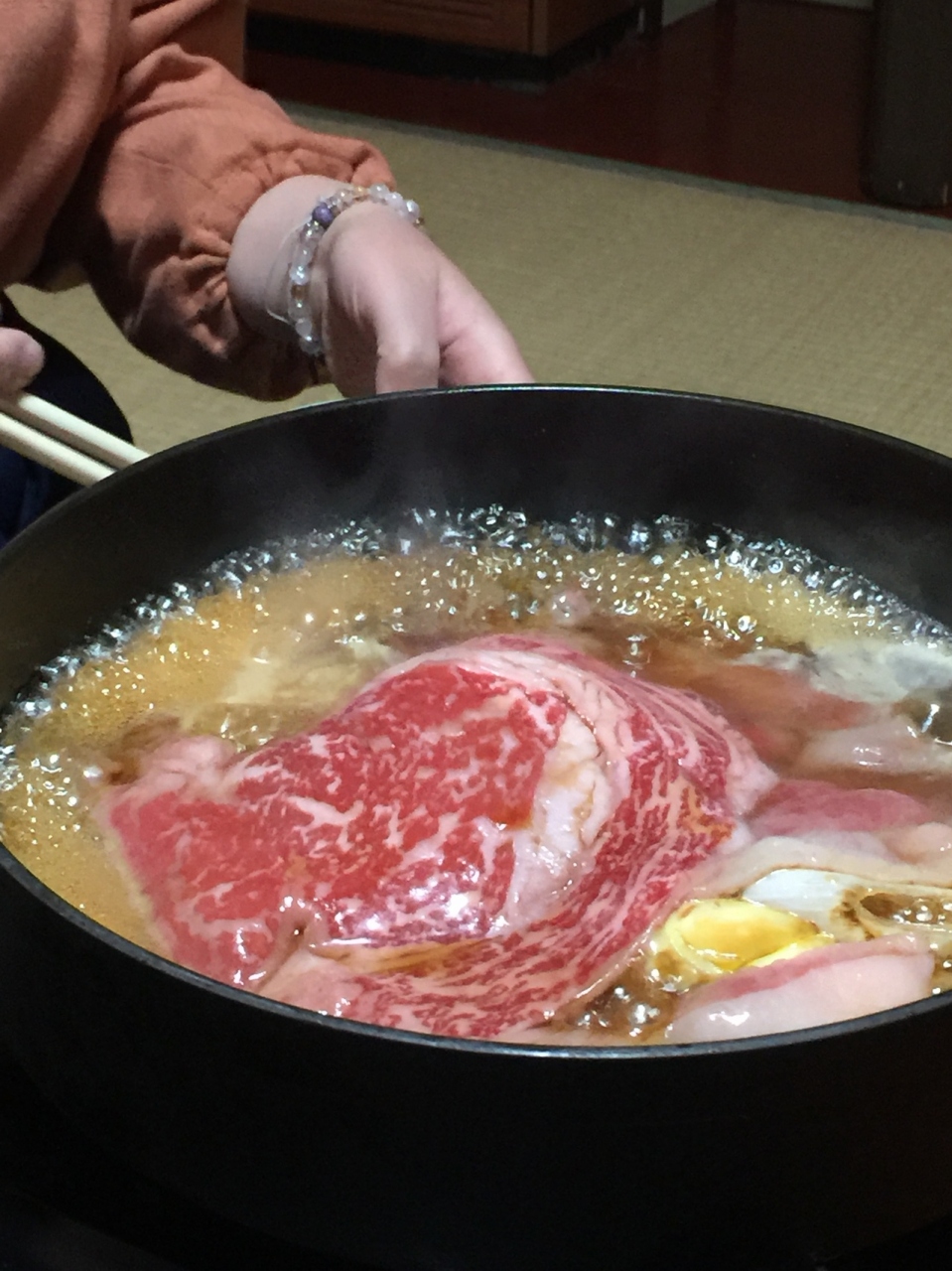 気のいい中居さんがすき焼きを作ってくれるので、ラクでした!朝ご飯の後、コーヒーのサービスがあると嬉しいなあ…。朝ご飯は和食御膳で、今時のバイキングじゃないのも私には良かった。
