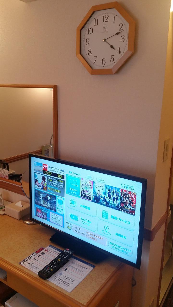 他のホテルにはない大きな掛け時計があって時間が見やすいのが東横インの利点です。
