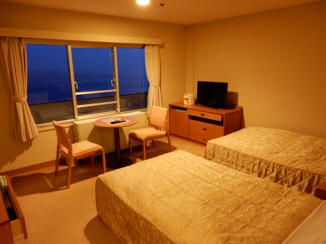 部屋は恐らく全室オーシャンビューで、夜になるとライトアップされた野島崎灯台がきれいに確認できました。