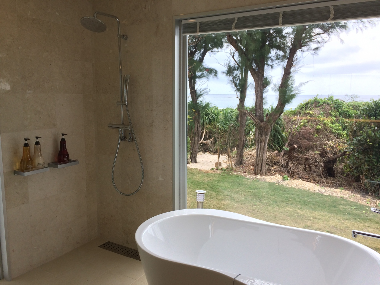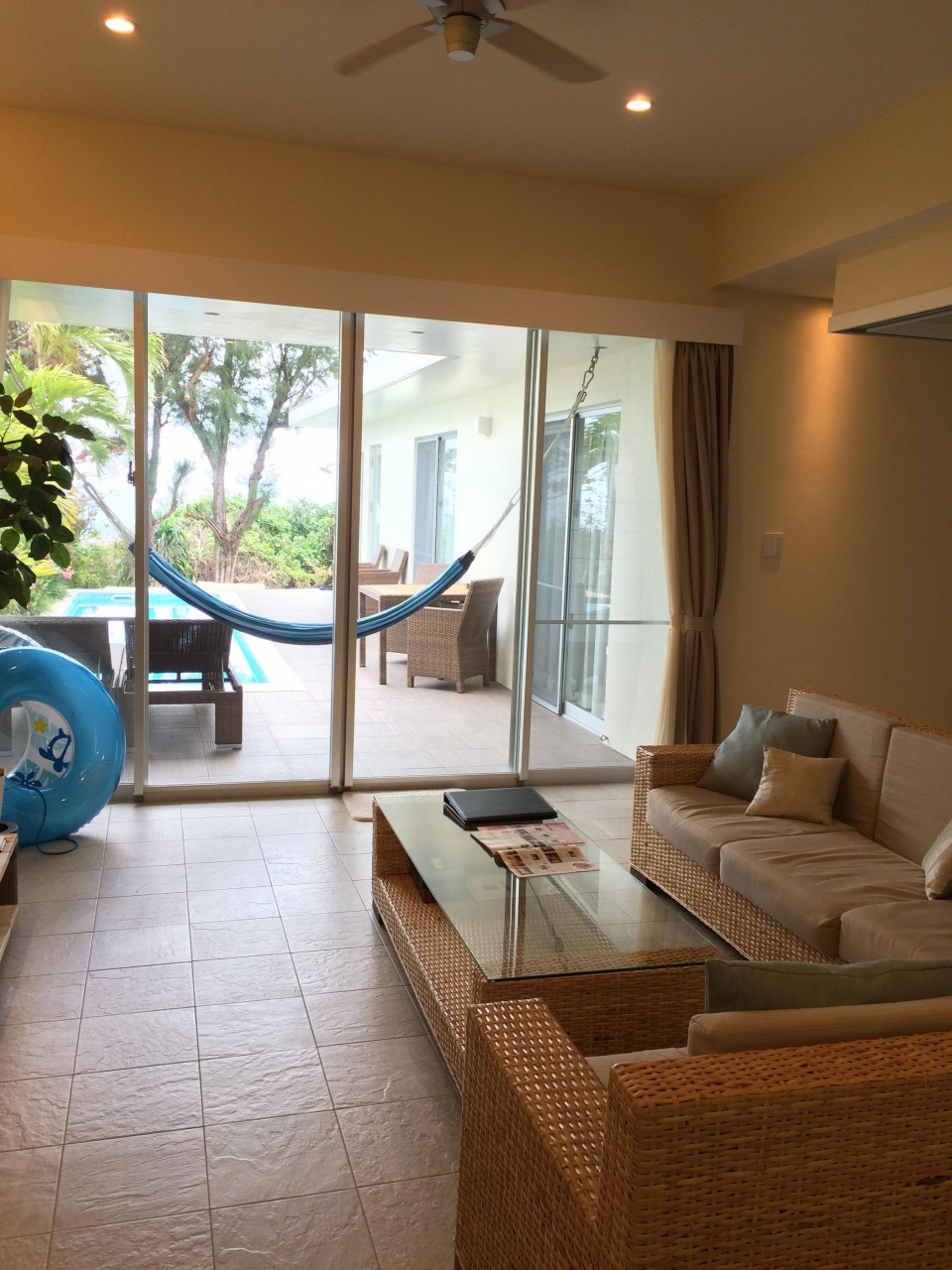 テラスから歩いてすぐの所にビーチがあり、立地も良い。