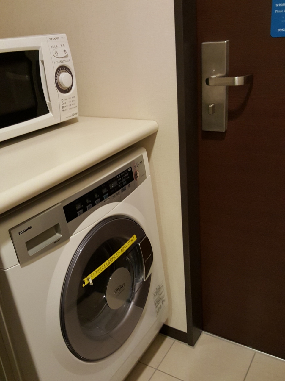 電子レンジやコインランドリーはビジネスホテルだと共用でありますが朝、温かいものを食べたいときにわざわざ着替えて化粧をして・・・となると面倒!室内にあるのは本当に便利でした。