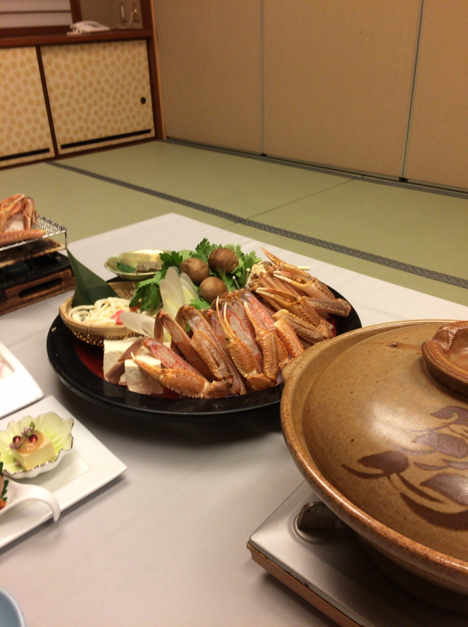 さて、次は夕食ですが、これでもかというくらいのカニを頂きました。
