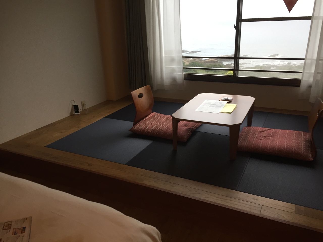 山から見える海岸線は最高の景観だった。手前の滴るような南の島の緑、黒い岩に白い波、青い海原と空。あいにくの天気だったけれど客室からの景色が良かったです。部屋も気に入りました。十分な広さと清潔感でした。残念なことは露天風呂がないこと。
