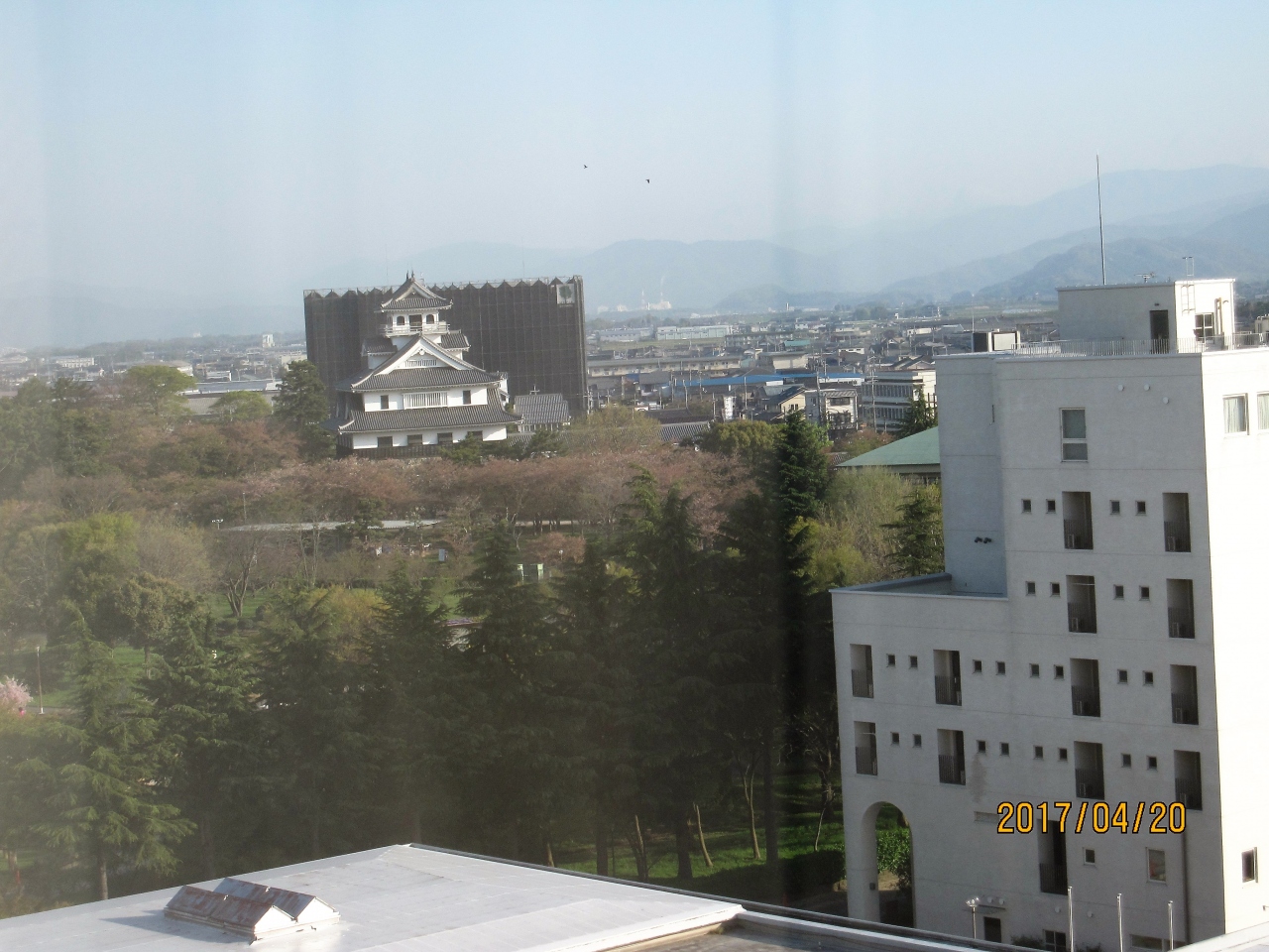 部屋からは湖北琵琶湖と長浜城(歴史資料館)が遠望できます。