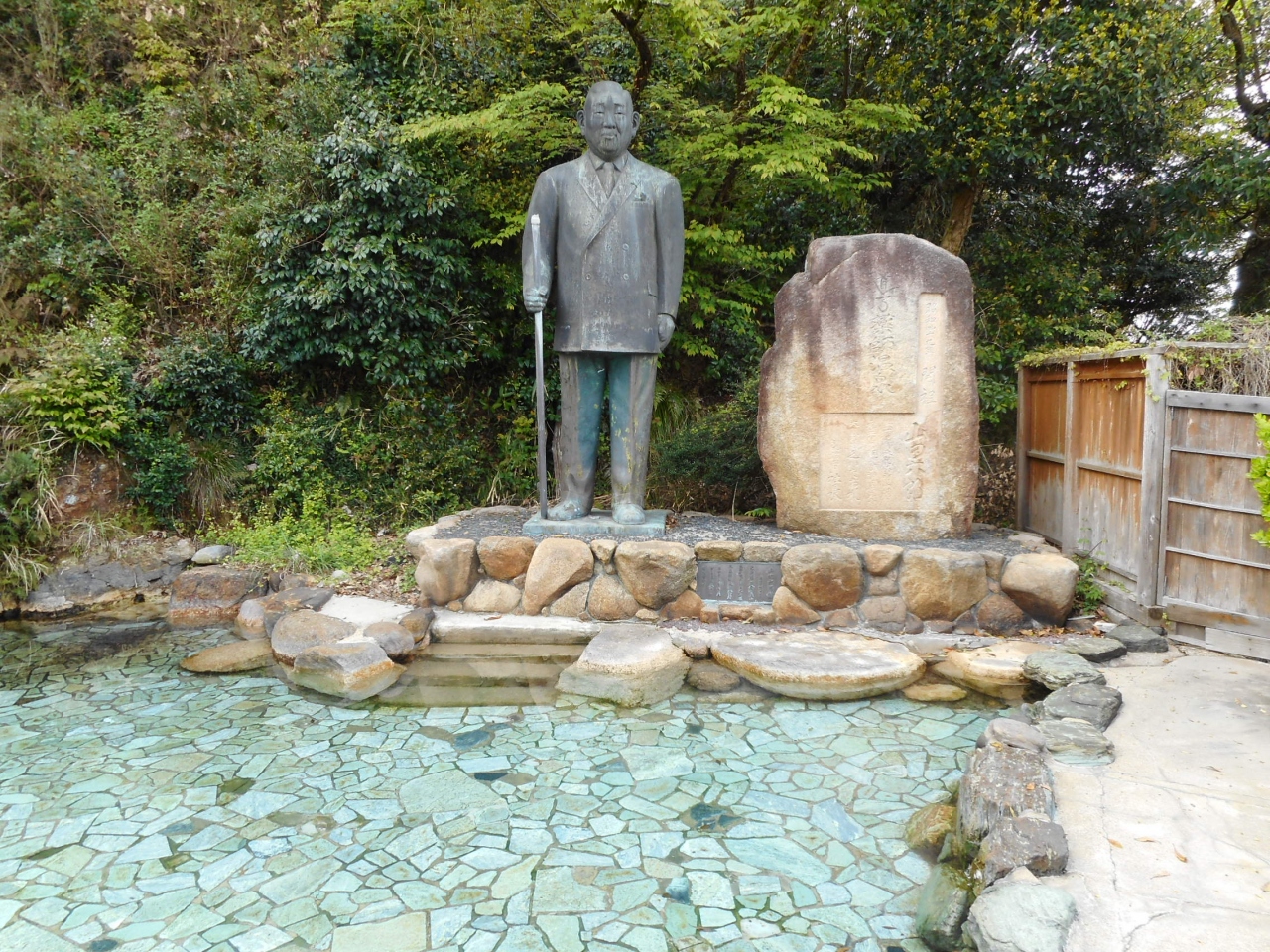 ここは大阪道頓堀くいだおれの創設者の山田六郎氏が開いた温泉とのことで、露天風呂に大きな銅像があり、びっくり。