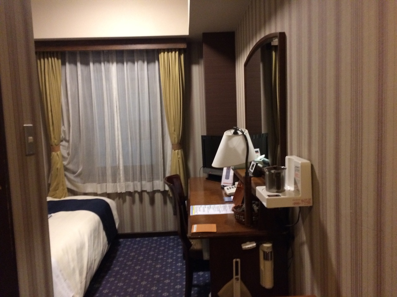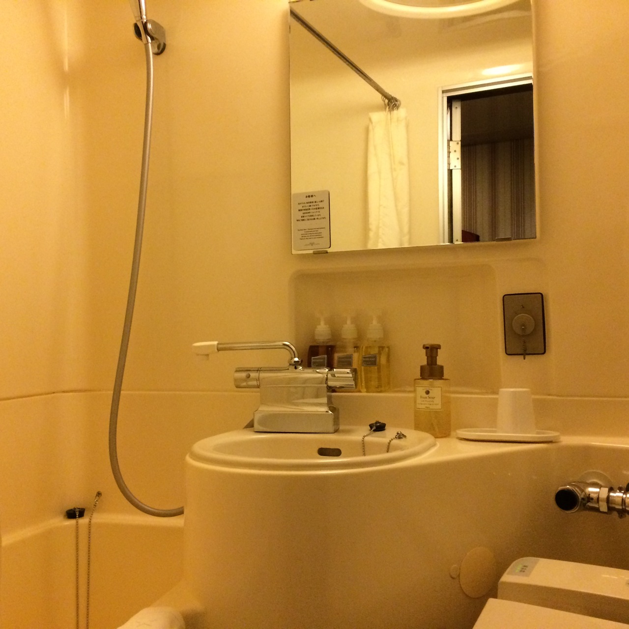 女性の大浴場は洗い場は3つですが、浴室は広く浴槽も5名以上は入れます。ロッカーは貴重品入れがあります。洗顔フォームもあります。部屋のお茶はティーバッグで暖かいお茶、パウダーの方で冷茶が楽しめます。冷蔵庫、消臭スプレーありです。駅から近く便利です。APAホテルポイントもたまります。