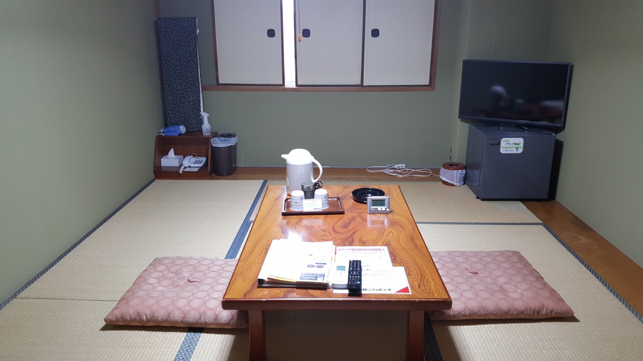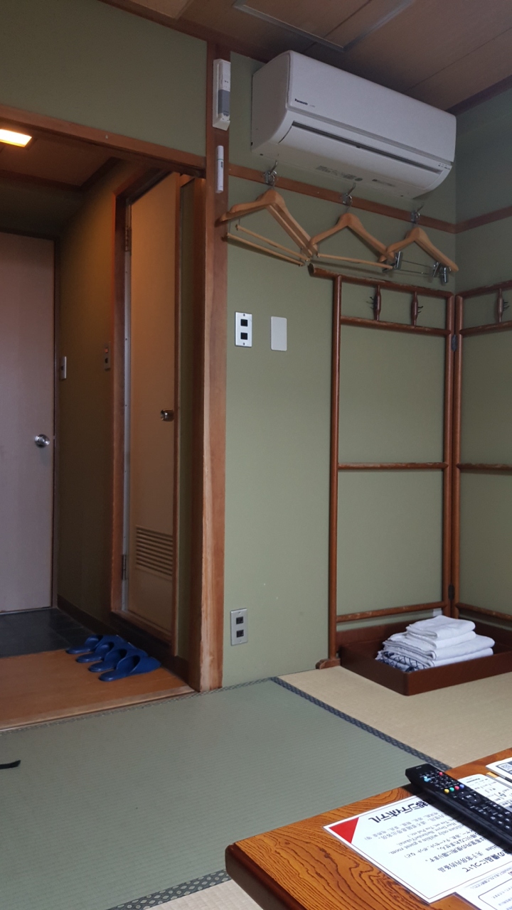 和室で布団を自分で敷く様式です。ドアが内側に開くタイプで入り口付近だけ少々不便な印象ですが、それ以外は不自由なくゆっくりできました。