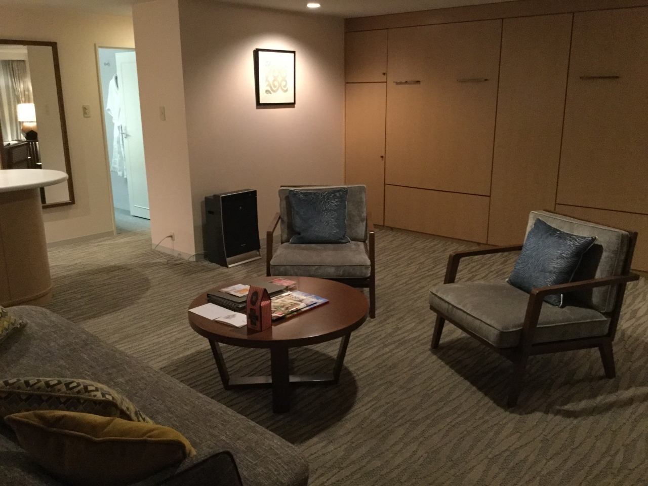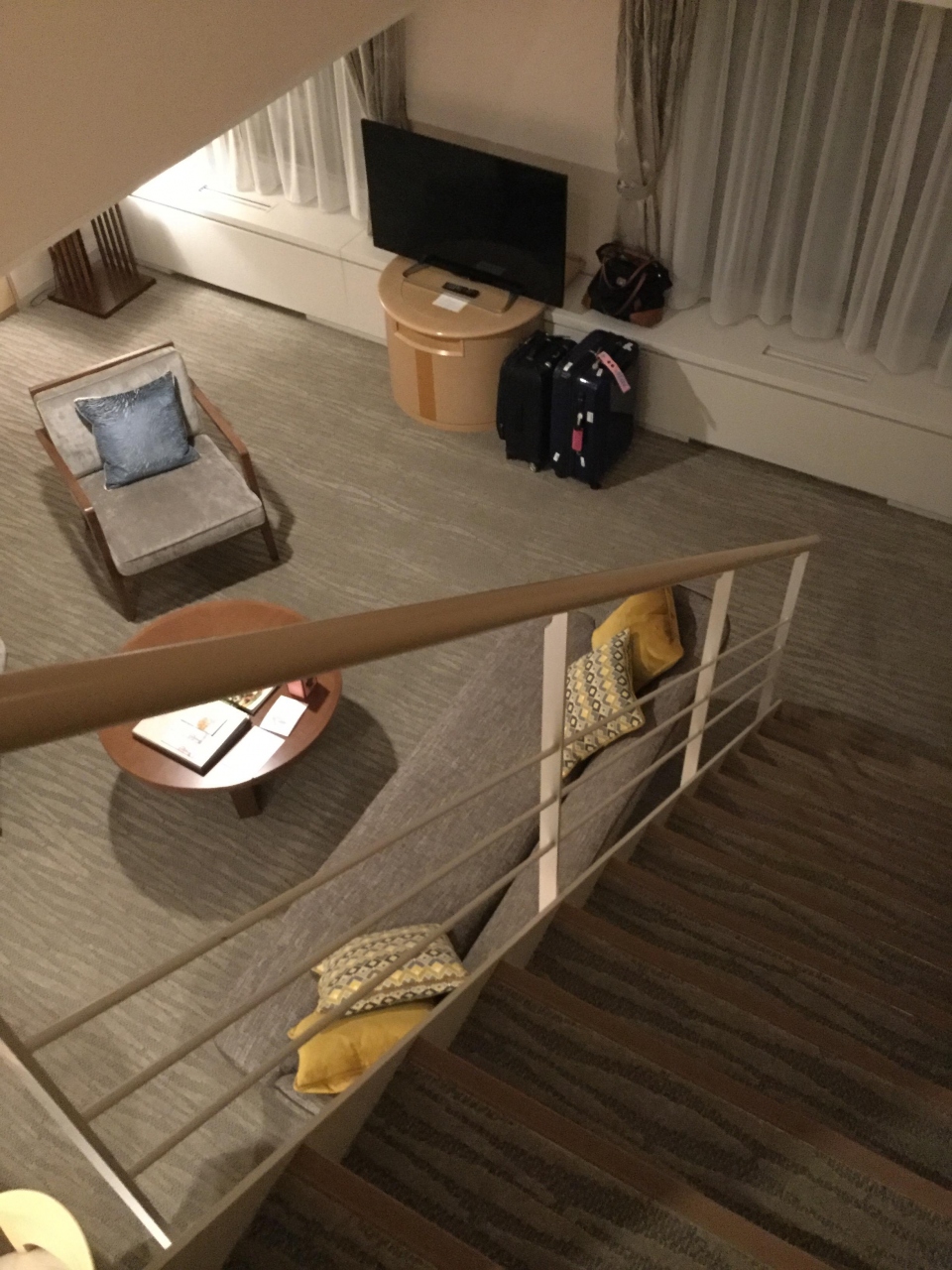 一番安い部屋から、delux family suite にアップグレードして頂きました。全室、メゾネットタイプ(2階建)のタイプの部屋だとは聞いていましたが、案内された部屋に入ると、家族から驚きの声が出ました。豪華なメゾネットタイプでした。上の階には、寝室があり、ベッドを一台増やしてもらいました。下の階には、リビングとミニキッチン、それにお風呂とトイレありましたリビングの壁には2台の引出し式のベッドがありました。大満足です。