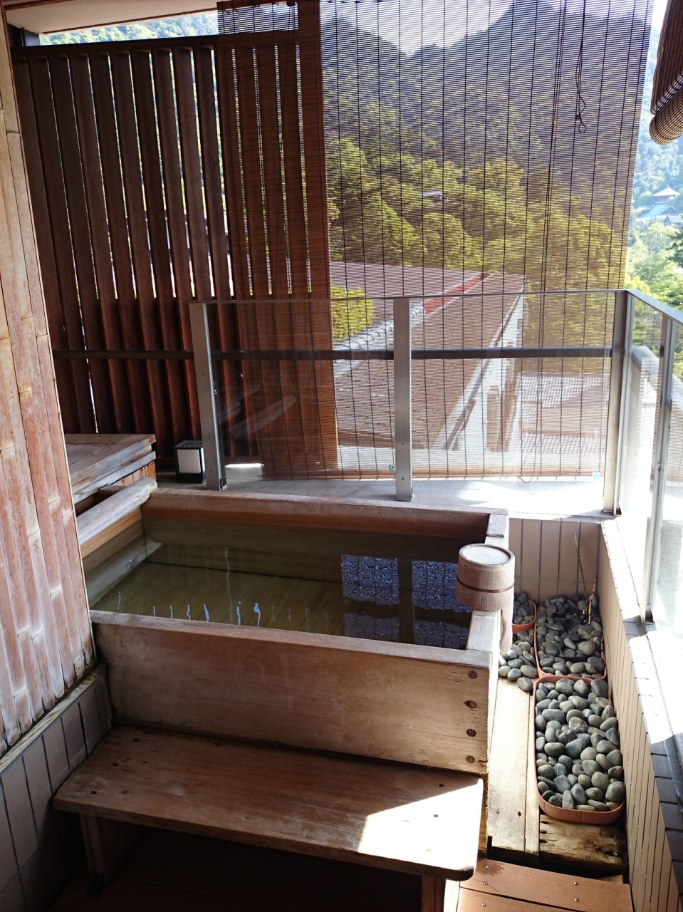 個室に貸し切り風呂のような風呂が2つも付いてます。
