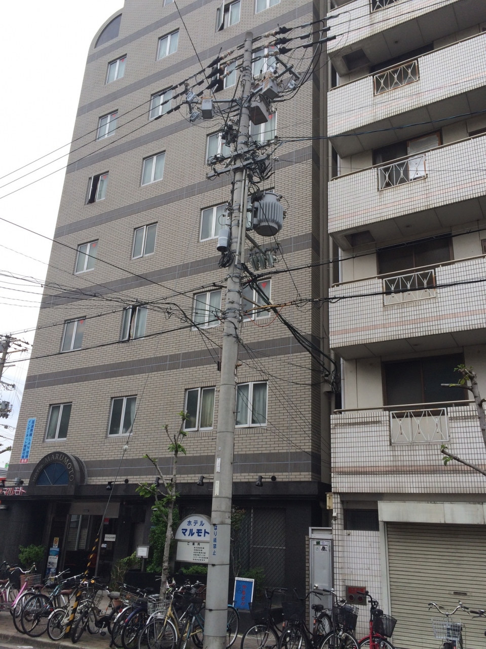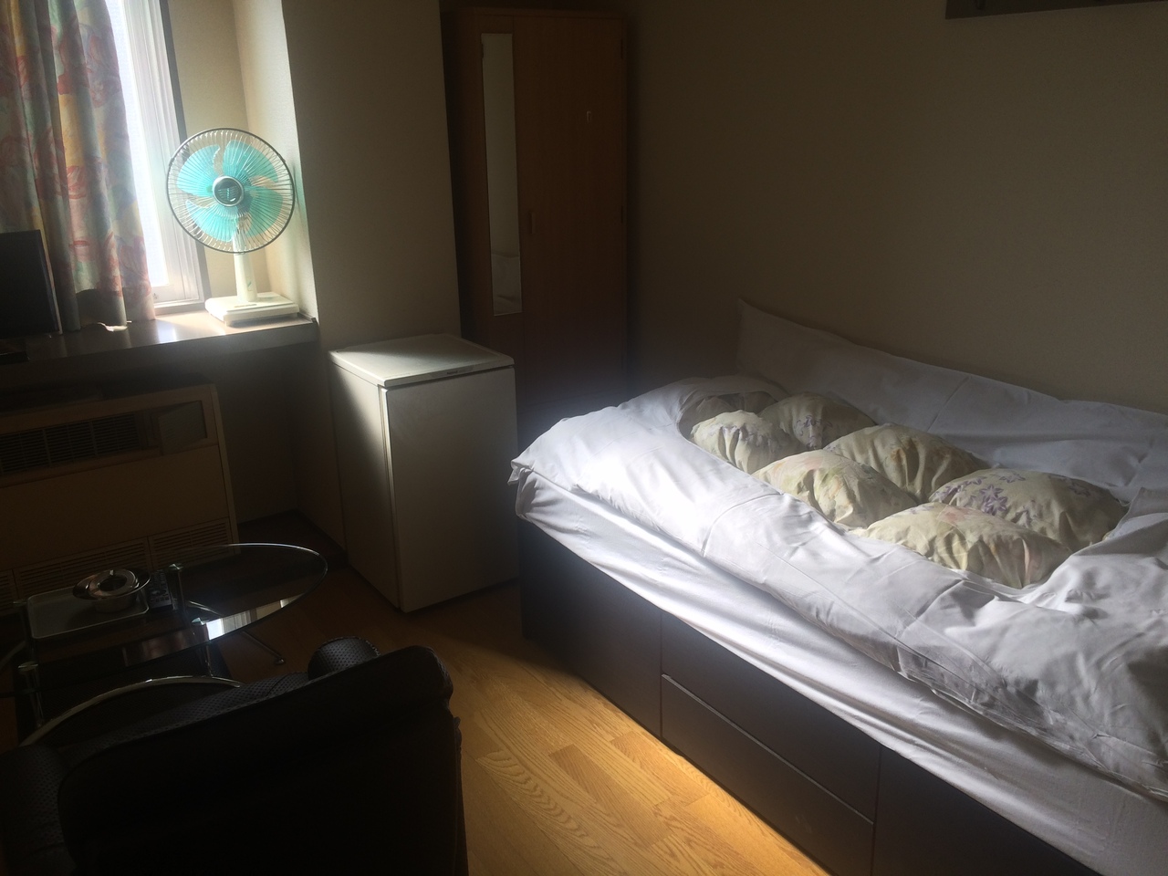 交差点の角にある大きな建物でした。室内はベットで、テレビ、冷蔵庫、テーブル、椅子があるシンプルな部屋でした。風呂は洗い場が5つあり風呂の湯が熱めでした。シャンプー、石鹸は液体の物が常備されていました。新今宮駅へは交差点渡り直ぐでコンビニ、飲食店等周辺は店が豊富で移動しやすい宿でした。