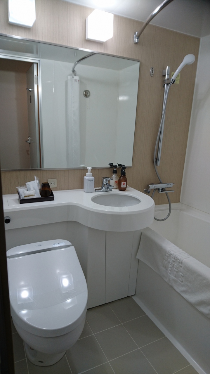 長岡駅の改札を出て、駅ビル内30秒ほど歩けば到着です。JR東日本系のホテルで利便性以外はさして期待していなかったが。ユニットバスは、リノベーションしたばかりなのか、眩いばかりの綺麗さでした。部屋もベッドのリネン類も清潔で、ビジネスホテルとしては、とても快適に過ごせました。宿泊した7階の714の窓からは、長岡駅ホームが目の前で新幹線の発着が見れます。鉄ちゃんは楽しく過ごせるでしょう。