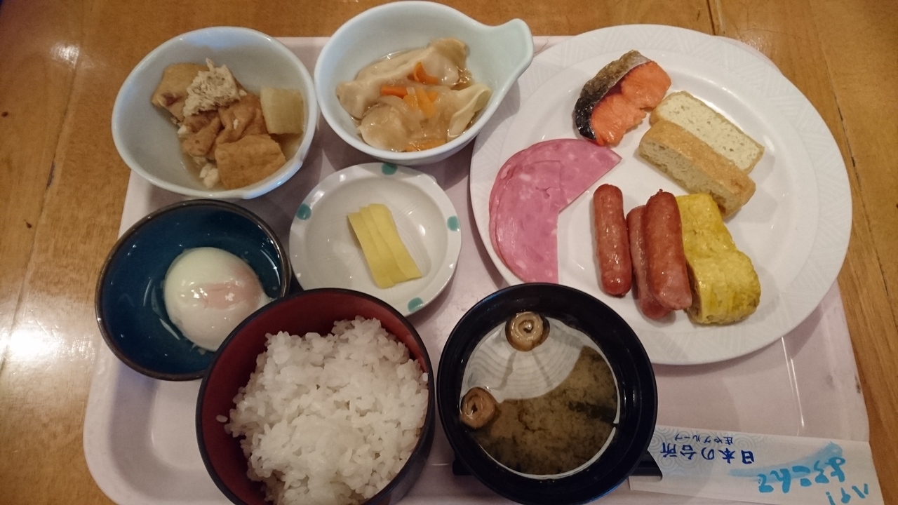 朝食は、1Fにある居酒屋「日本海庄や」で簡単なバイキングです。栃尾名物の揚げが出て、テンションが上がりました。味も普通に美味しかったです。。駅前に快適で廉価なビジネスホテルが幾つもありますが、利便性で一歩、このホテルが抜きんでるといったところでしょう。