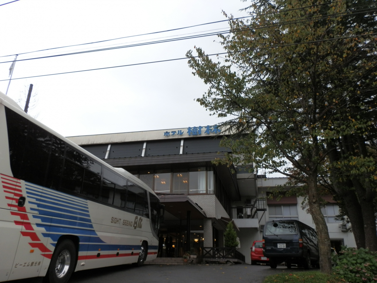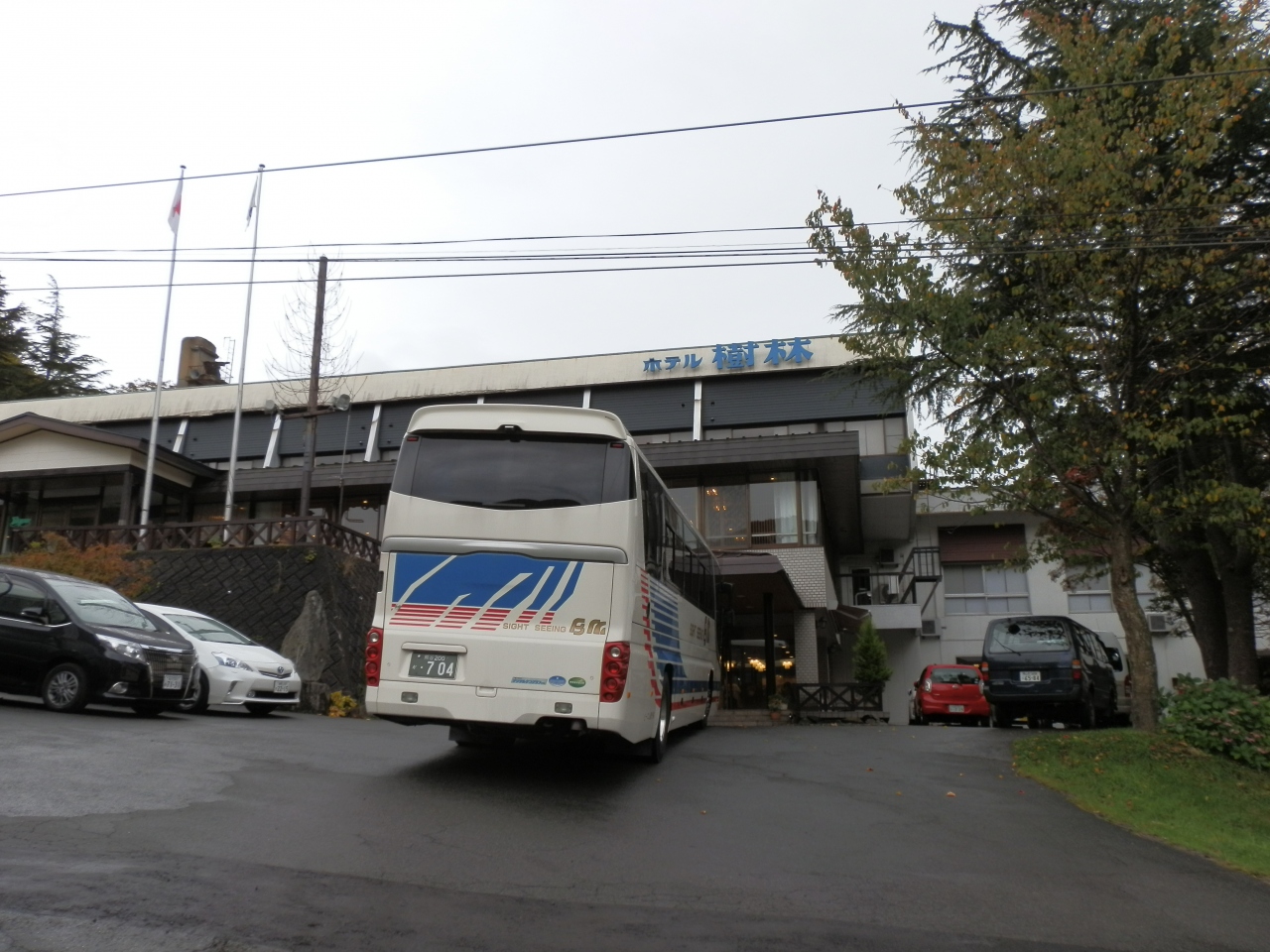 ホテル樹林の玄関前にリフトのケーブルが走っていた。従って、目の前はスキーゲレンデで、スキーヤーにとって最高のロケーションに違いない。