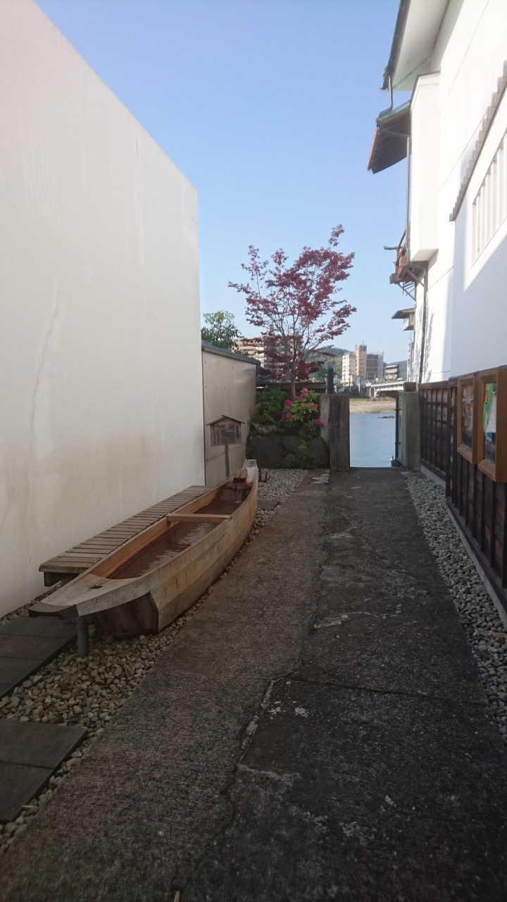 岐阜市の長良川温泉に来たときにこの旅館に行きました。この旅館の隣には足湯があり無料で入ることができます。自分でタオルを用意すれば足湯に浸かることができます。足湯の湯船が舟の形になっていました。利用時間は午前7時から午後8時なのでこのときは午前7時に来たので朝早くから足湯に浸かることができました。