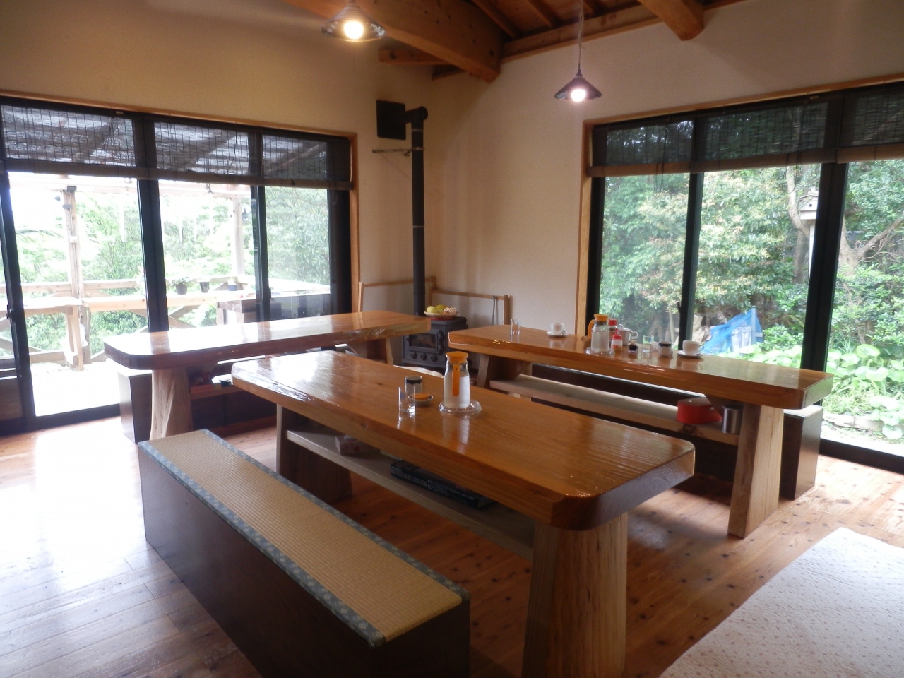宿に着くと大きな2匹の犬に迎えられます。とてもおとなしくて人懐っこいです。この宿を経営するご夫婦も優しい人柄で、親戚の家に遊びに行ったようなアットホームな宿です。着いた当日川に落ちて、靴がびしょびしょになって困っていたら、わざわざ乾燥機にかけに行ってくださいました。屋久杉までのトレッキングのガイドさんも紹介してもらえ、レンタカーもここで予約できました。食事も奥さんの手料理でとてもおいしかったです。初めてトビウオのから揚げも食べてみました。私が食べたいといった首折れさばの刺身も次の日探して出してもらえました。