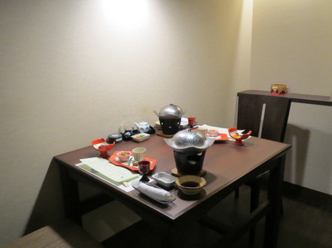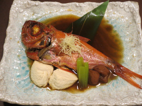 食事は夕、朝食とも、お食事処「大季里」にて個室食です。お料理コースは旬のお魚のお造りをはじめ、素材の味を活かした地の魚介のお料理など全10品。名物「金目鯛のあたみ煮」がメインの「湯宿会席」でした。大変おいしかったです。