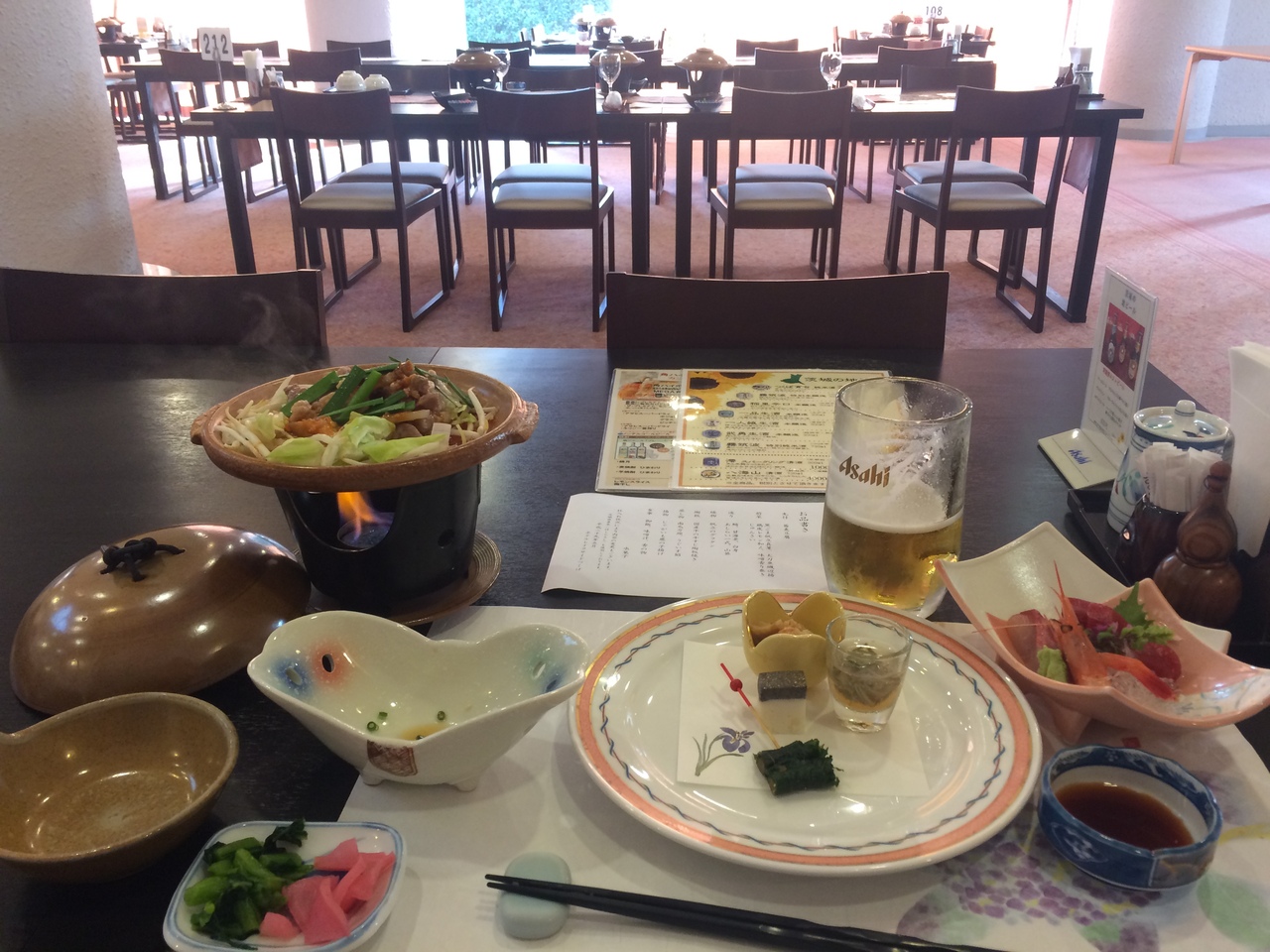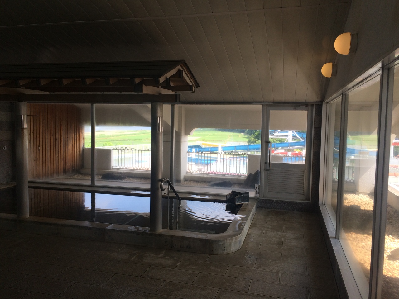 同じ敷地にゴルフ練習場、テニスコート、プール等があり広い敷地ですがホテル棟は3階建にコンパクトにまとまった横長の建物です。温泉施設があり内湯は2階、露天風呂は地下1階にあり露天風呂は2つの湯船があり一つは源泉掛け流しなのが良かったです。夕食、朝食共に満足のいくもので程よい味で、朝食は高級感があり納豆が藁でつつまれていたのを提供されました。部屋はシンプルですが広い空間でした。夜、露天風呂に入りながら蛙の鳴き声を聞きながらまったり出来ました。