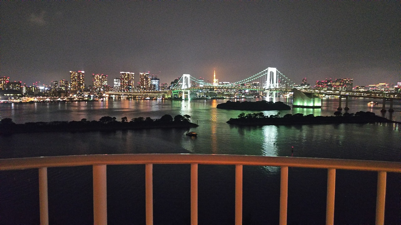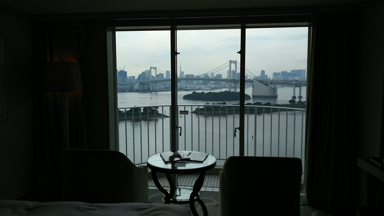 予約してあったエグゼクティブルームがHHONORSのアプリで事前にアサインされた部屋にそのままチェックインとなりましたが、レインボーブリッジビューは勿論ですが、赤い東京タワーが正面に、そして東京スカイツリーがちょうどビルとビルの間に、淡い青でも足もとからしっかりと存在感をアピール!絶景です。この眺めには母も大喜びでした。