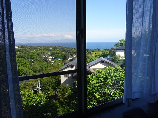 伊豆高原駅からタクシーで10分ほどの別荘地の中にあります。天気がよければ部屋から伊豆大島が見えます。部屋にはウォシュレットつきトイレ、ユニットバス、空の冷蔵庫、お湯ポットとティーバッグ、ティッシュ、歯磨きセット、ドライヤー、スリッパなどの備品がありました。クローゼットがなくハンガーが二つあるだけなのはちょっと不便でした。夕食は刺身を中心とした海鮮料理で他の方の口コミにあるように食べきれないほどの量です。朝食は干物、納豆、温泉たまごといった和風旅館並みのメニューで食事のコス トパフォーマンスは良いと思いました。小さな露天風呂(いったん外に出て庭を下りていく)と家族風呂ぐらいの大きさの内風呂の温泉があります。どちらも交代制で貸切利用でした。wifiも使えるようでしたが、利用しませんでした。廊下にセルフ式の飲みもの販売機があります。