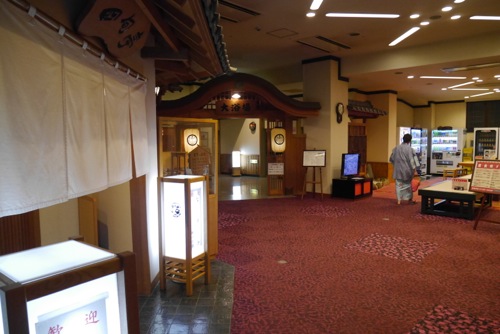 宿泊は別館ですが、本館のお風呂も無料で湯めぐりとして使えるとのことなので、入浴しにいきました。すると、お風呂の手前のいわゆる湯あがりコーナーのところに、昔の温泉番付だったり、古めかしい自転車だったりとあれこれが展示されており、この地の歴史に触れられるようなラインナップだなと思いました。別館よりも、フロントは格段にひろびろとした感じ。これから別館に宿泊される方、ぜひ本館も楽しまれて帰るとよいと思います。