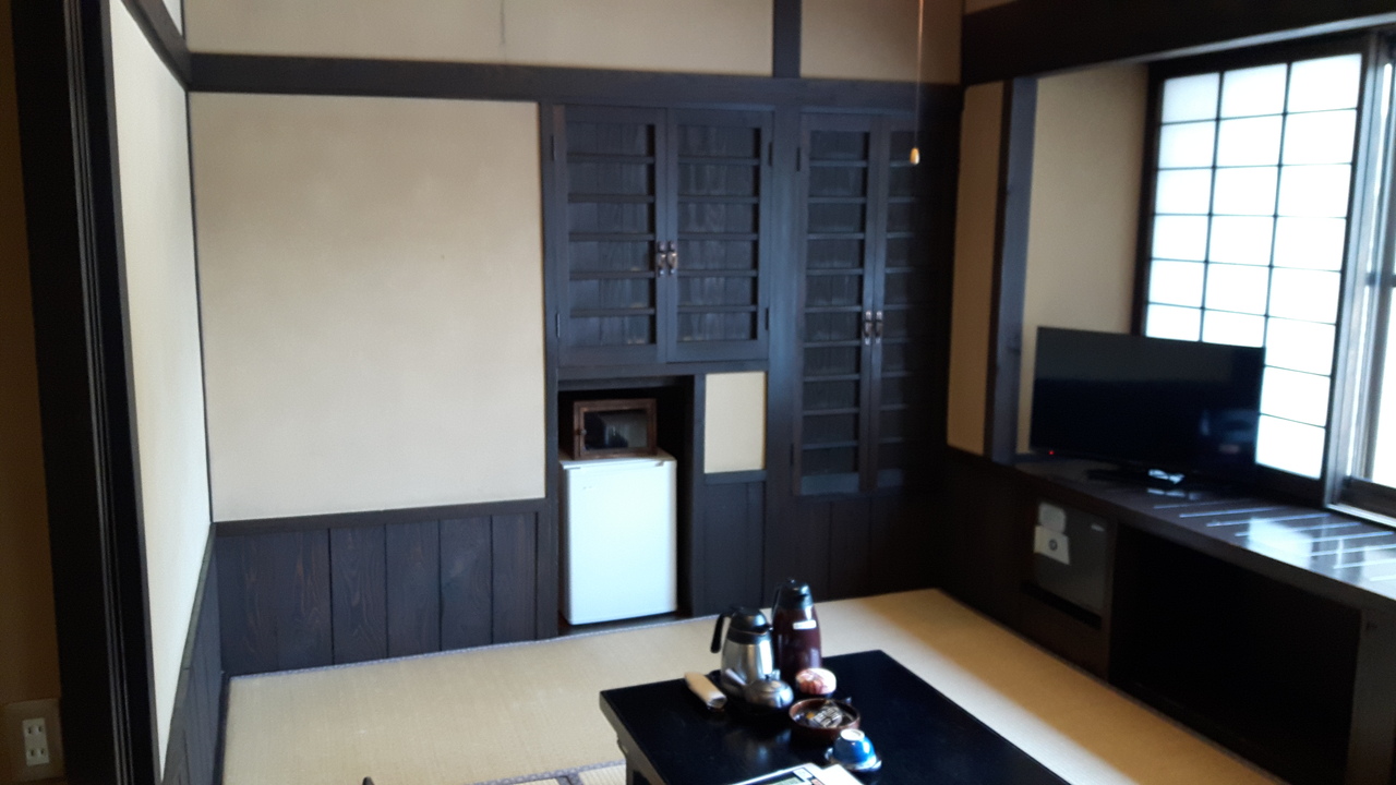 江戸時代から続く歴史あるお宿。肥後細川藩の御用宿で、黒川温泉一番の老舗の宿だそうです。早めにチェックインをさせてくださり、サービスも満点。内風呂は大きくはないですが、高い明かりとりの窓と木の壁がレトロで雰囲気があります。夕飯は今時珍しいお部屋食。揚げたての山菜の天ぷらや地元のお野菜を使った色とりどりの料理、最後はステーキまで、心のこもったコースを堪能できます。