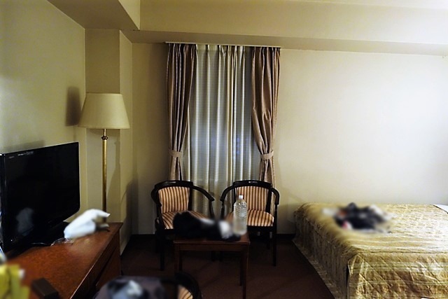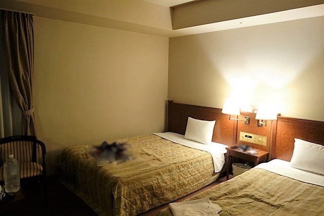 至って普通のツインルームですが、照明が少し暗い印象でした。