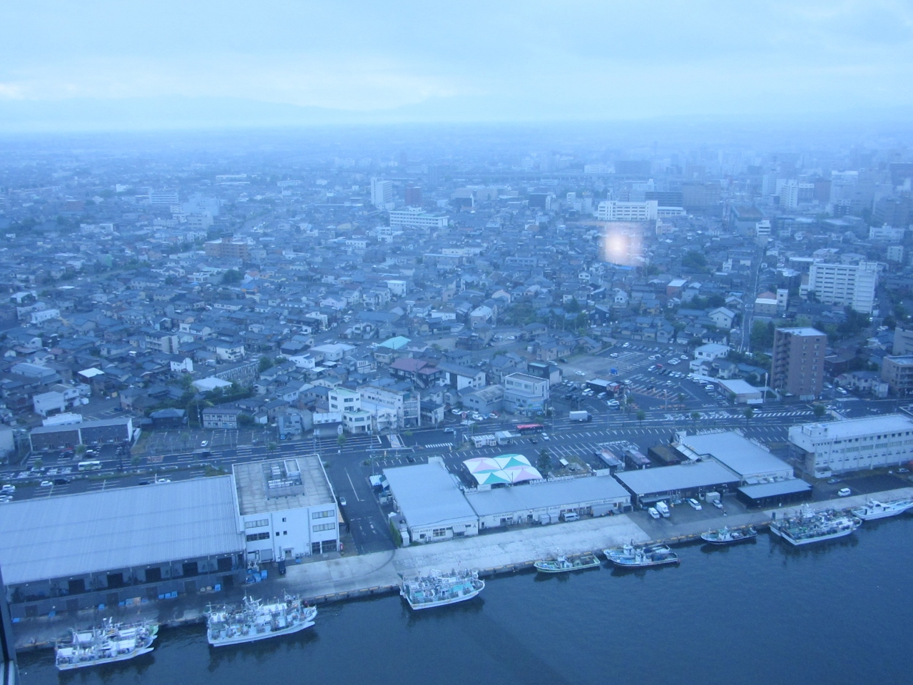 朱鷺メッセとつながっていて、佐渡汽船乗船場も徒歩10分程度で濡れずに行ける。