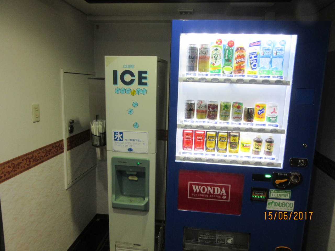 製氷機は各フロアに大きなプラスチックカップとマドラーと共に配備されていた。