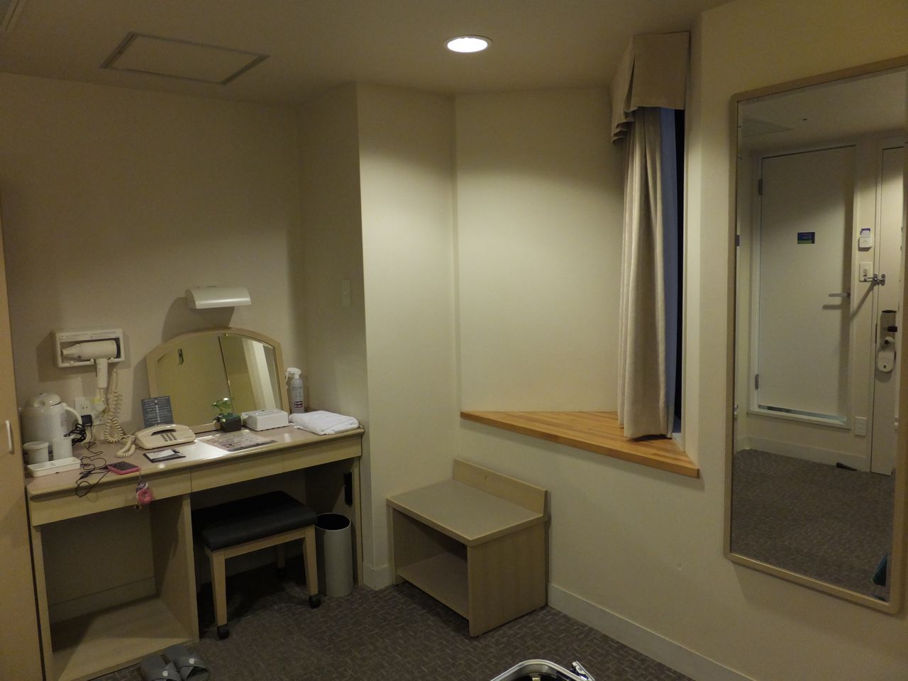 シングルは普通の部屋なのでしょうがツインは余った場所に作られたような感じで、今回泊った部屋は斜めになった小さな窓しかなく、開けると壁しか見えませんでした。まあ、食べ歩きしていたので寝るだけだったので問題無し。ベッドは気持ちよく、部屋もきれいで、なにより大浴場があるので便利。男性用しかない、とありますが、大通りを挟んで向かい側の系列ホテルの大浴場(ぱうぱう)は男女おおきな浴場なので、そちらを利用すると気分がいいです。