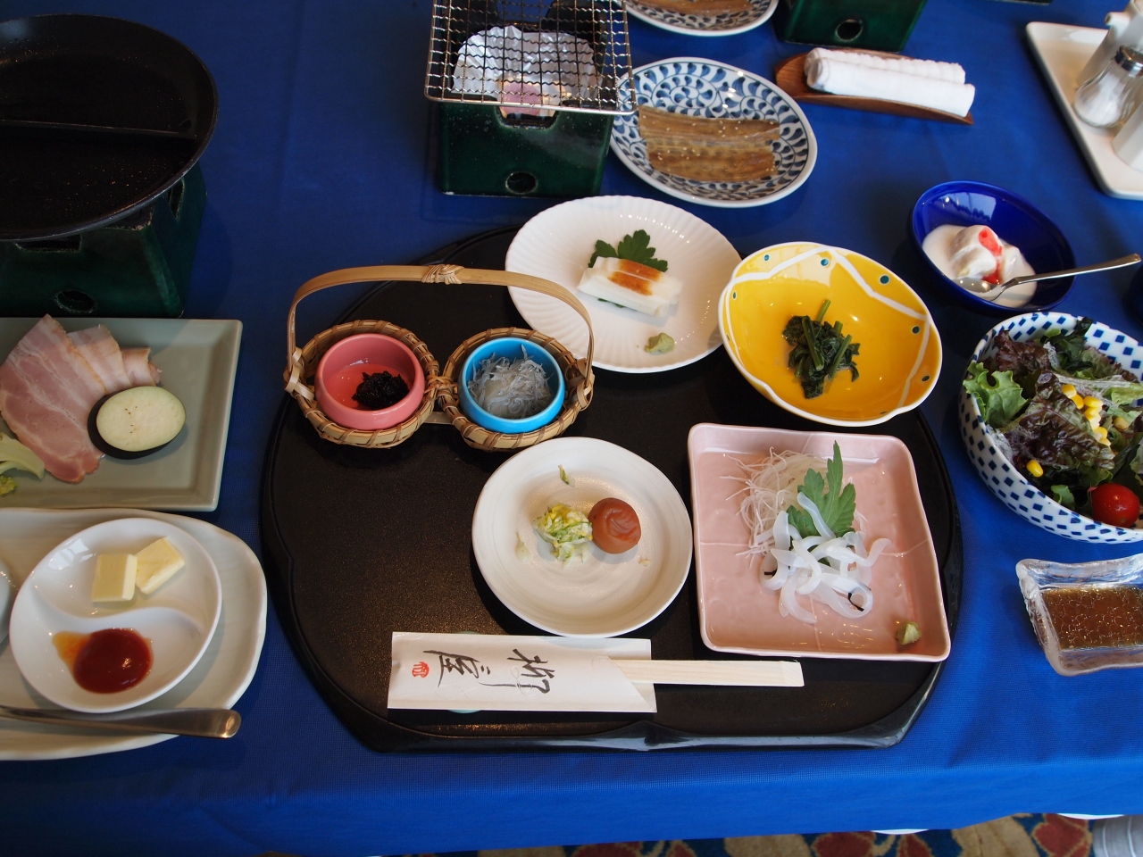 食事は、夕食も朝食も和食で、レストランで頂きました。年を取ってくると椅子に座って食べられるのがとても助かります。量は多くはありませんが、やはり新鮮な魚介類が多く出ました。特に、お造りは、多くの種類が一枚ずつ出てきてとてもよかった。締めは、鯛の漬け丼にしていただき、ご飯の量も多い目にも少ない目にもしてもらえました。朝食は、普通の和食です。