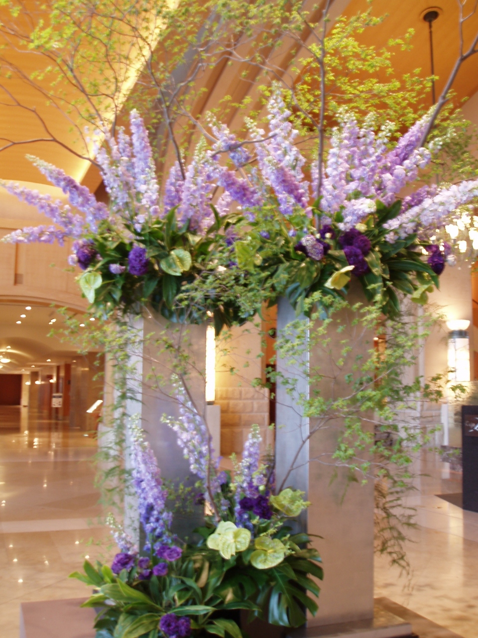 吹き抜け天井で、大きな窓から洞爺湖を望むロビーは開放感があり、豪華な生け花、ゆったりとした椅子の配置、ピアノやハープの生演奏なども素敵でした。