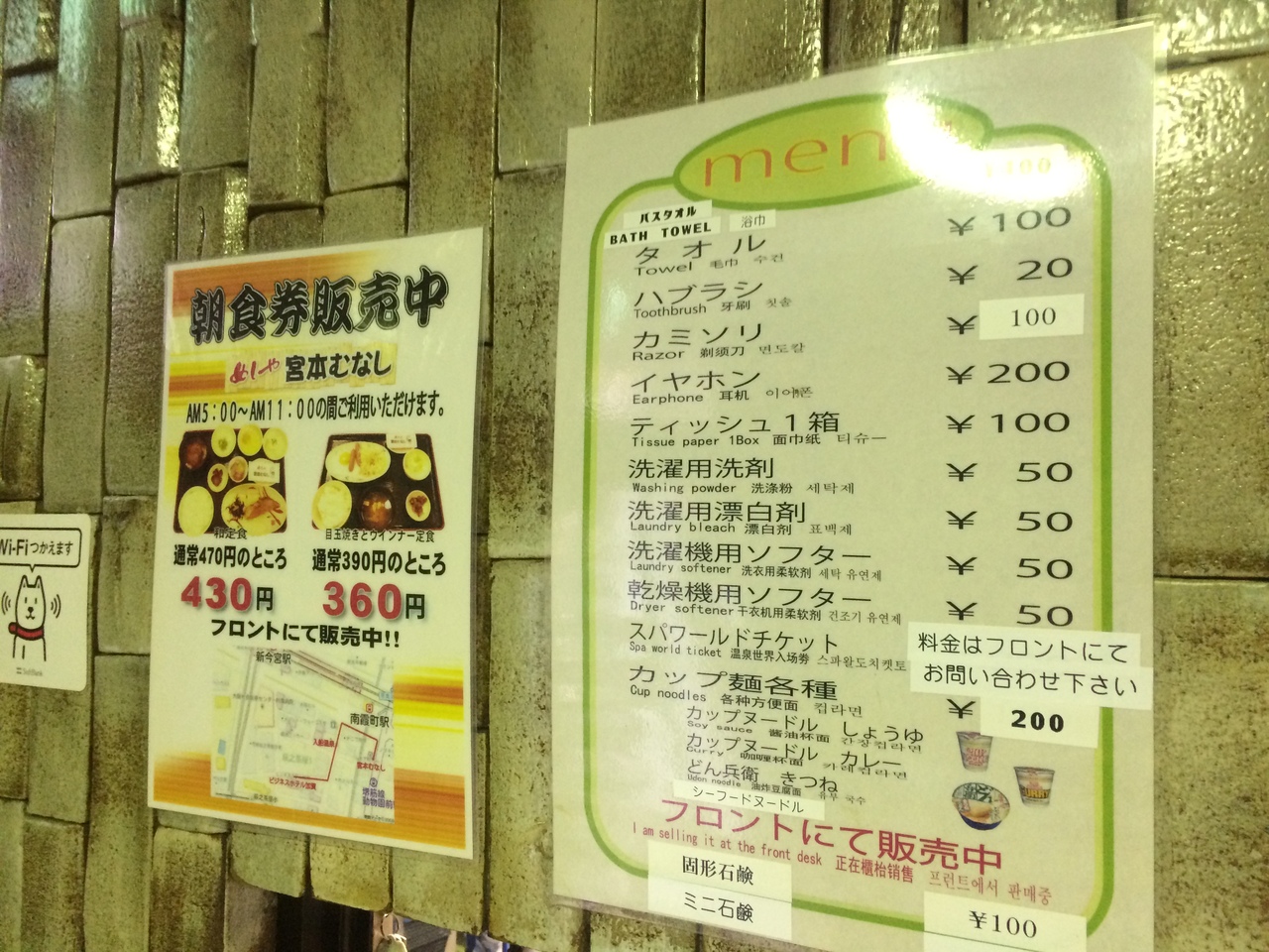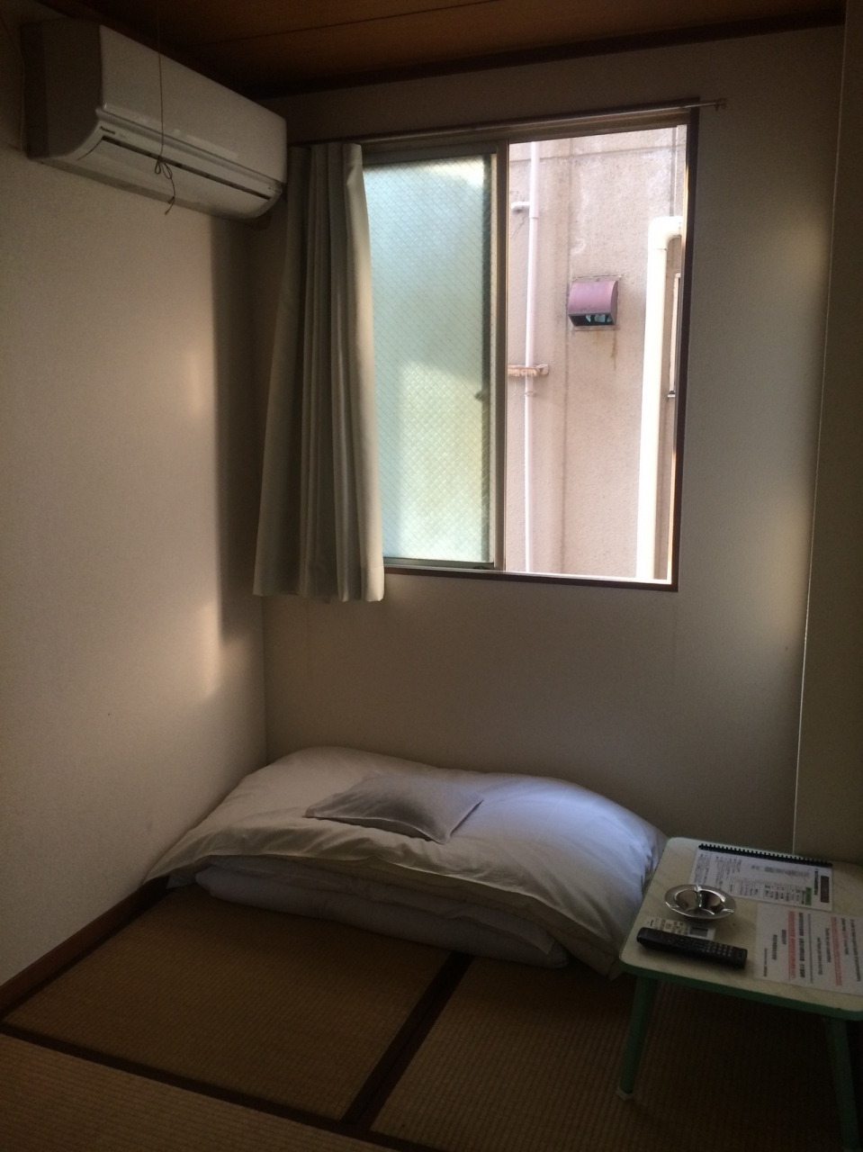 新今宮駅から徒歩5分ぐらいで周辺の宿泊施設の中では客室が多いホテルです。部屋は3畳でミニ冷蔵庫、テレビ、エアコンがありハンガーが4つありました。大浴場も完備され、シャワーは24時間利用出来ます。電子レンジもありました。快適さはないですが、周辺にはスーパーもあり繁華街も近いので立地は良かったです。