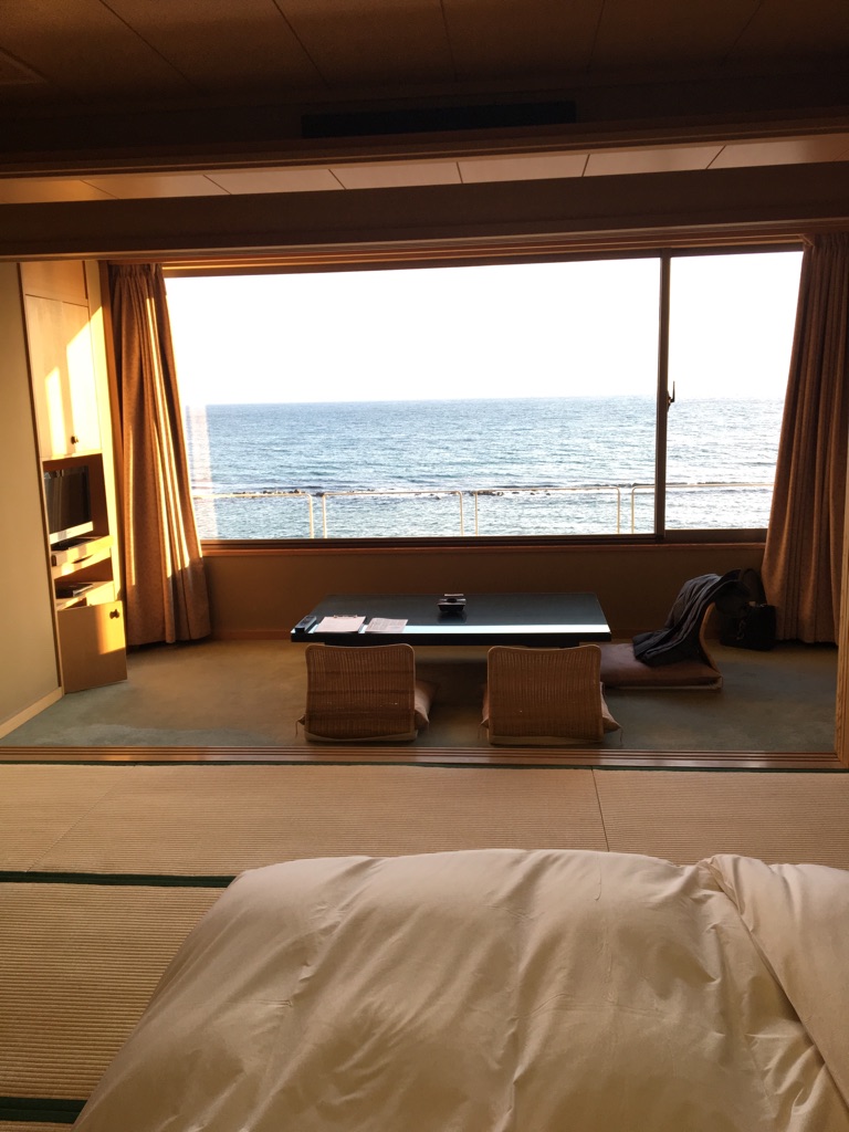 部屋からは海が見え、右手には函館山も。素晴らしい景色です。
