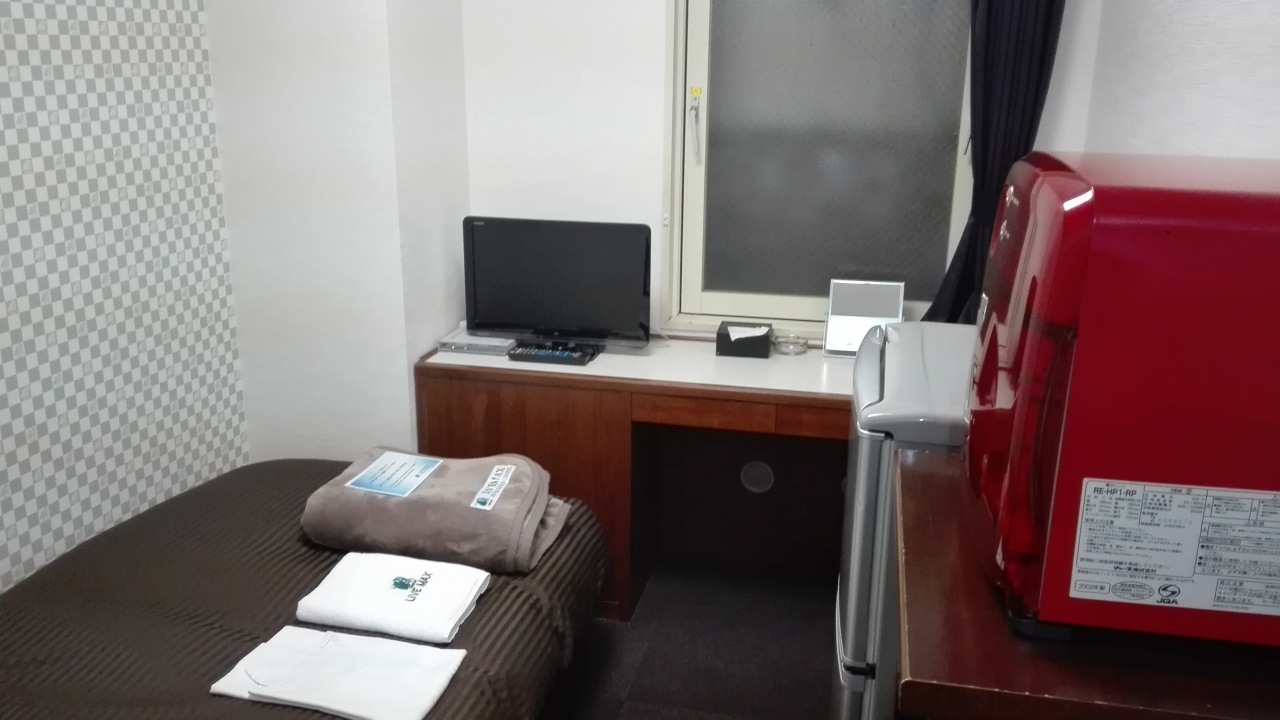 部屋には電子レンジや大きな冷蔵庫もあり良いのだがその大きな冷蔵庫がくせもの。ベッドの目の前に明らかに似合わない大きさの冷蔵庫の音がうるさくて寝付けない。疲れのおかげで寝ることはできたがやはりうるさい。