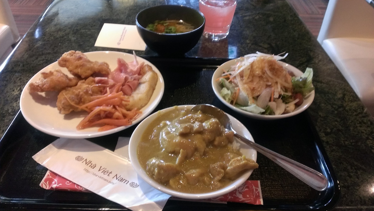 朝食はベトナム料理屋さんでいただきます。フォーやココナッツが効いたベトナムカレーなどもありましたが、唐揚げや焼き魚など、日本風のものもありました。おいしくてつい食べ過ぎました。郡山に行くことがあったらまた泊まりたいホテルです。