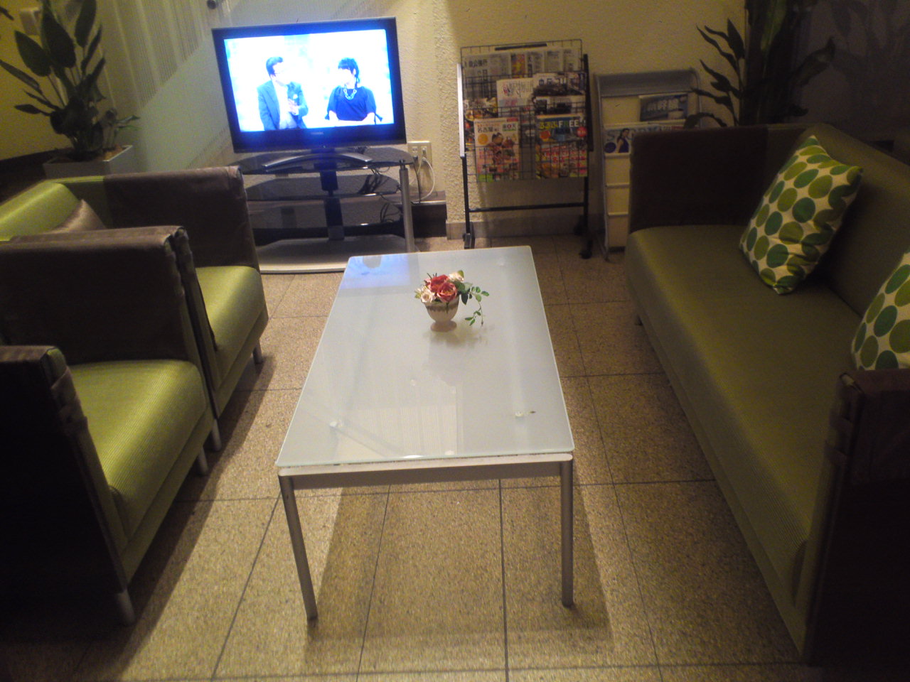ロビー横にシャンプーや入浴剤、ティーパック等置いてあり