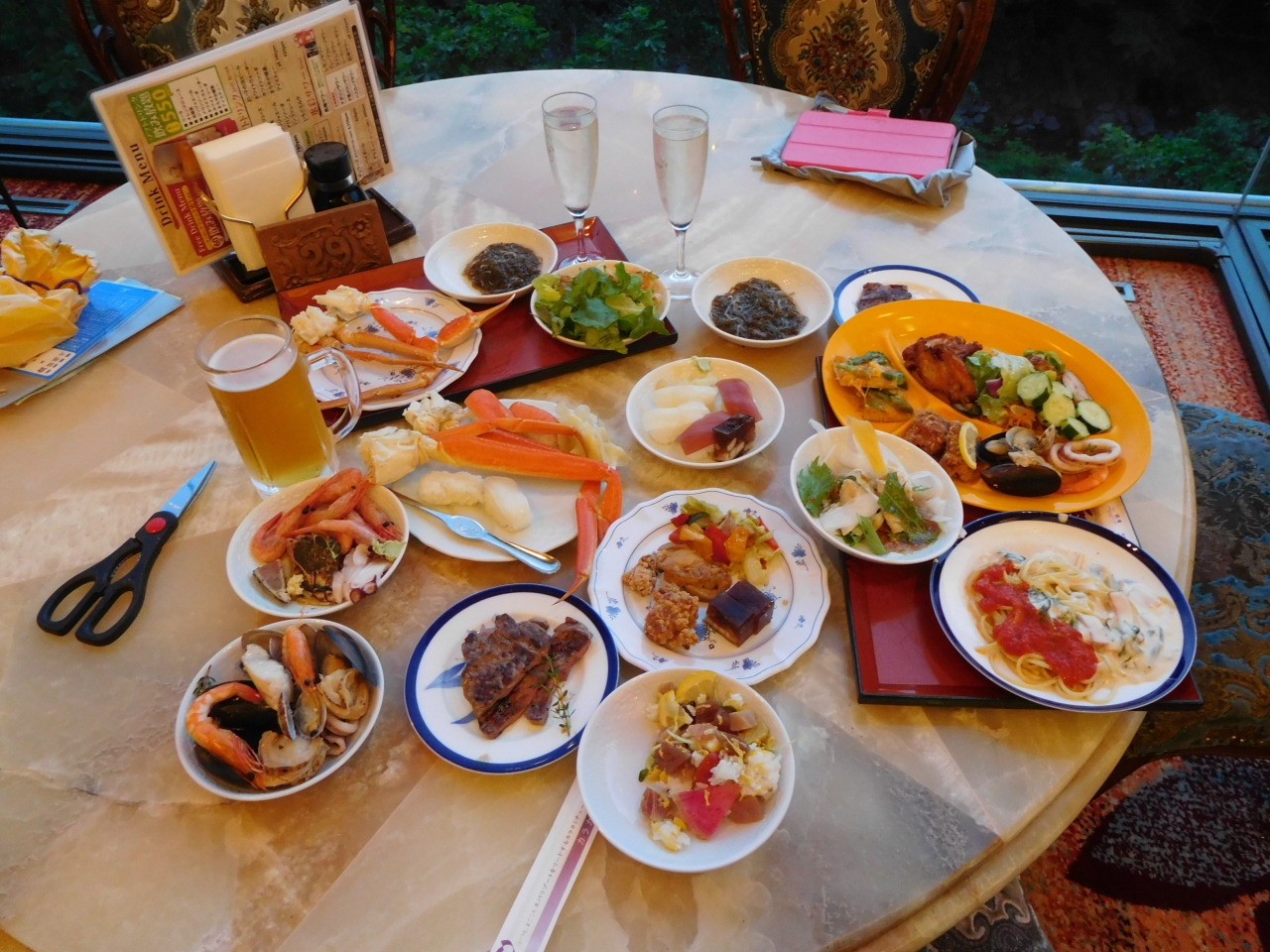ホテルは20年以上も前に一度利用した事がある。定山渓は、何と言っても景観が素晴らしい。温泉も湯量が豊富でなかなかのものである。しかしながら、一時の温泉ブームで繁栄した巨大ホテルも、さすがに今の時代となるとデカい箱モノを持て余しているような経営がチラ見している。部屋は古いタイプの和室だし、大浴場も無駄に広いような気がしてならない。宣伝のバイキングだが、料理の品数は多いものの、蟹もステーキも寿司もパスタも、大手ファミリーレストランと遜色ない。ただ、とにかくお腹いっぱいになるまで食べられたのは事実であるし、そのプランの料金設定からすると、一応は納得の内容であった。