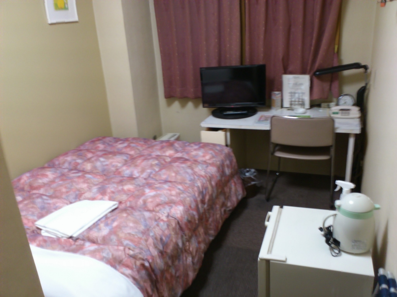 名古屋のテレビ塔のすぐま横のビルの中にあります。5階から上がホテルになっています。大きな通りに面していますが、ちょっとわかりにくかったです。客室は少し古めですが、料金も安く、コスパは良いと思います。浴槽はユニットバスで、かなり小さな浴槽でした。
