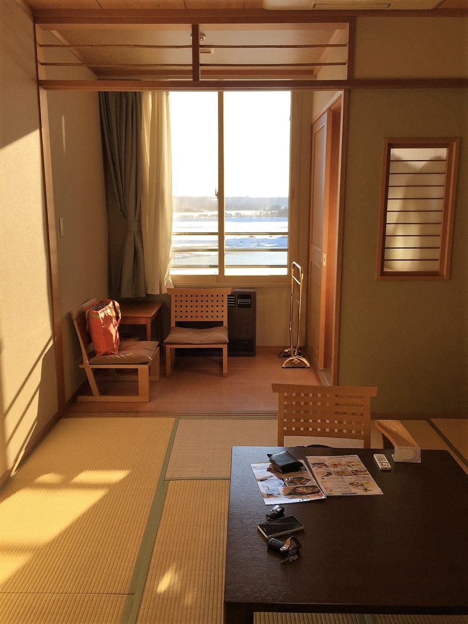 ネットで「部屋指定なし」のプランを予約。この期待していなかった「部屋指定なし」、なんと最上階の露天風呂付和室に案内されました。お部屋は狭めですが二人なら十分、客室の露天風呂も小さめですが景色も良くとっても気持ちが良かったです。風呂の出入り口にシャワー室があるのも嬉しい点でした。